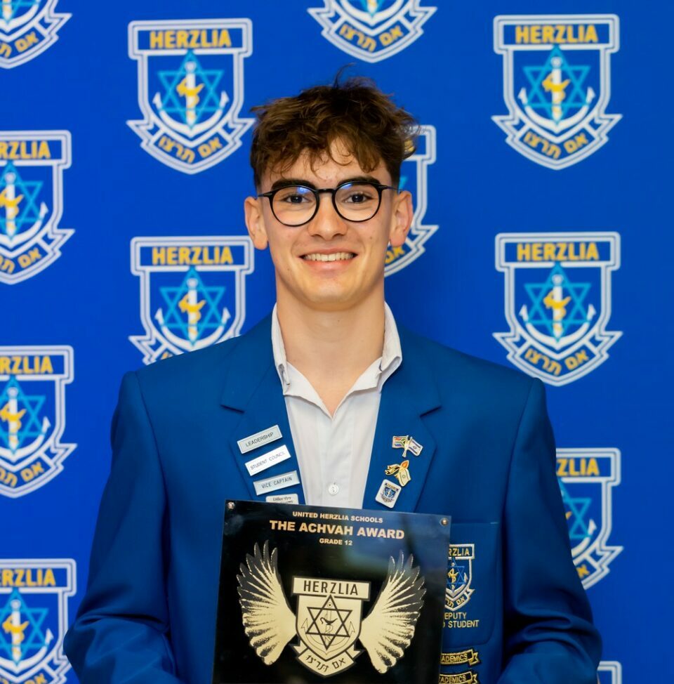 Achvah Award: Gr12 pupil who best exemplifies Herzlian menschlichkeit showing exceptional generosity of spirit and awareness of human connectedness: LEO BACHMANN