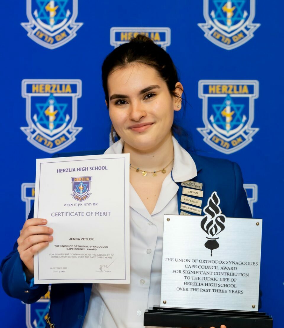 Union Of Orthodox Synagogues Cape Council Award (Recipients who have Contributed Significantly to the Judaic Life of Herzlia High School):JENNA ZETLER