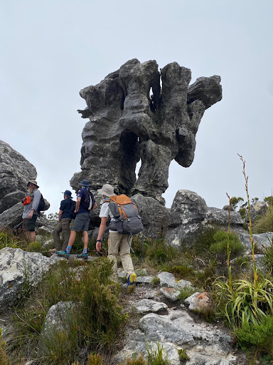 Once they had settled into their basic accommodation, they carried on hiking with their daypacks again at an astonishingly quick speed, all the way to Hout Bay! They braved the spectacular but precarious ‘Diving Board’ and posed for the obligatory pictures of Table Mountain’s most Instagrammed site. Returning to base, we cooked together before settling down for the night, abuzz with the excitement of the day and ready for the demands of the next day, despite the regular appearance of rain spiders and other Table Mountain wildlife.